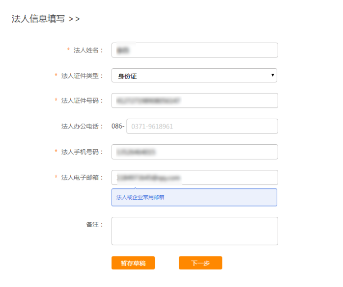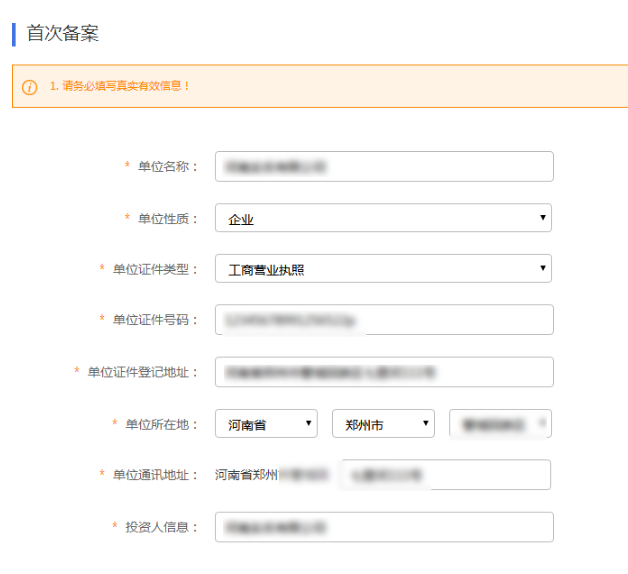 3.判斷出首次備案,按照要求和提示填寫主辦者和法人真實有效信息。