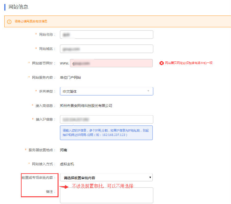 4.填寫真實有效的網(wǎng)站信息和網(wǎng)站負責(zé)人信息。