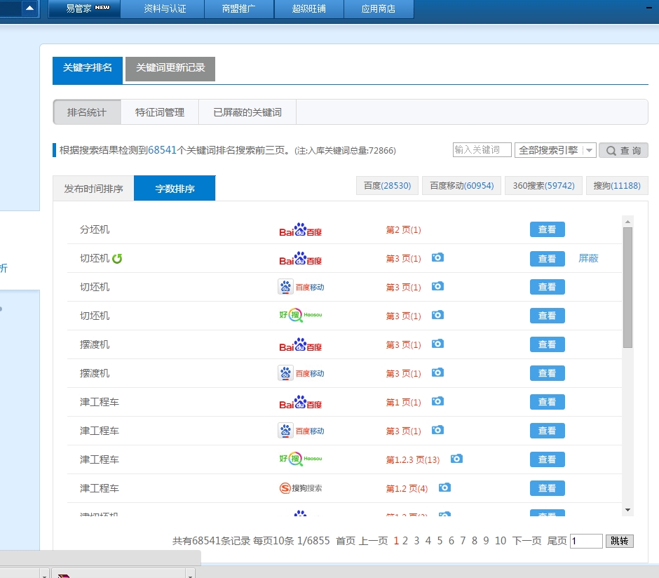鑫業(yè)關(guān)鍵詞詳情排名--將近7萬(wàn)個(gè)關(guān)鍵詞的排名效果(如上圖)