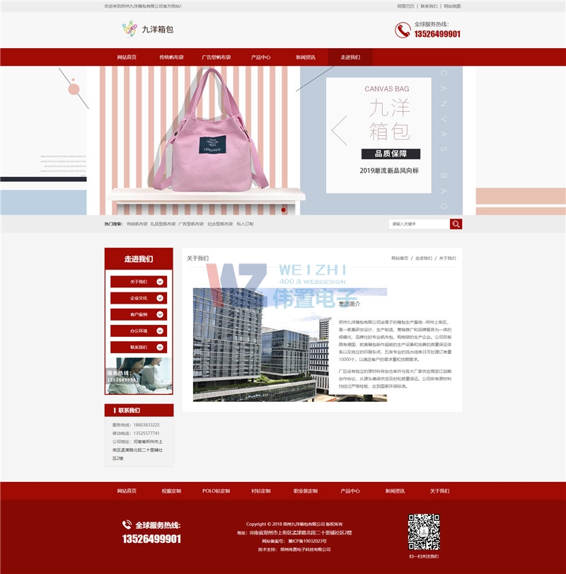九洋箱包聯(lián)系我們頁網(wǎng)站建設(shè)效果