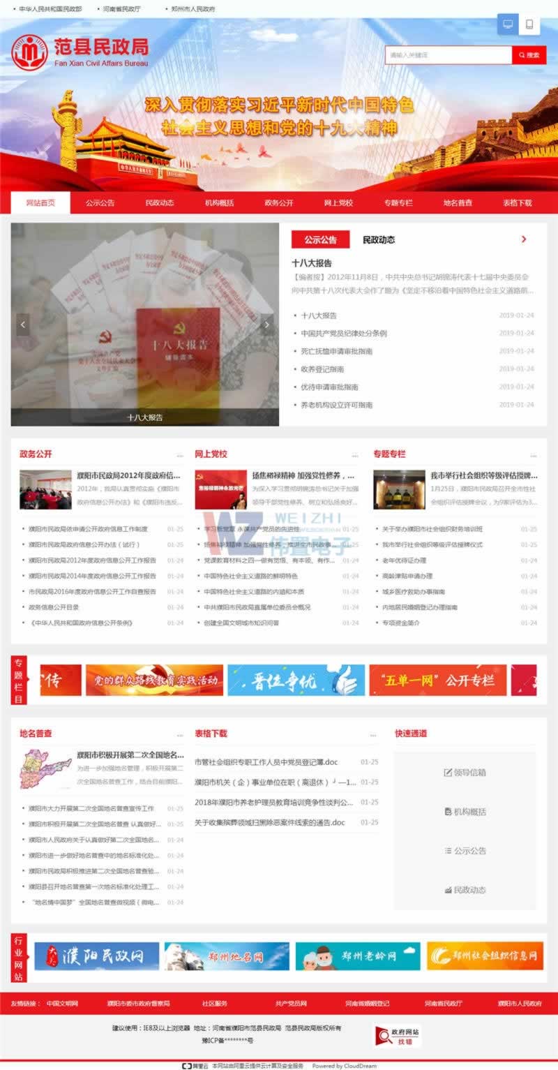 網(wǎng)站首頁重點展示了民政局的信息,該網(wǎng)站頁面展示比較細,信息也比較多,板塊設計合理。重點突出民政局特點,展示民政局的形象。