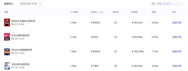 實際上,毛光光的帶貨直播也是選擇了“美妝”的類目,幾場直播的GMV都達到了百萬級別。