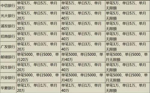 主要銀行儲蓄卡限額: