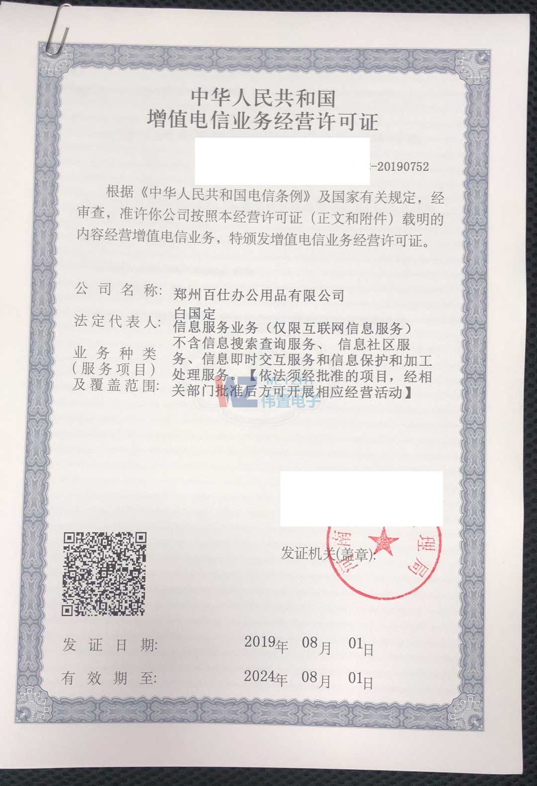 百仕辦公增值電信業(yè)務經(jīng)營許可證申請成功