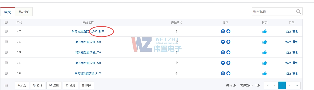 通常添加產(chǎn)品,會遇到同一個(gè)分類里,不同型號和尺寸產(chǎn)品,產(chǎn)品名稱與產(chǎn)品圖片不一樣,但產(chǎn)品其他信息都一樣,這個(gè)時(shí)候,可以點(diǎn)擊復(fù)制產(chǎn)品,會復(fù)制當(dāng)前產(chǎn)品所有信息,只需要替換產(chǎn)品名稱和圖片即可。
