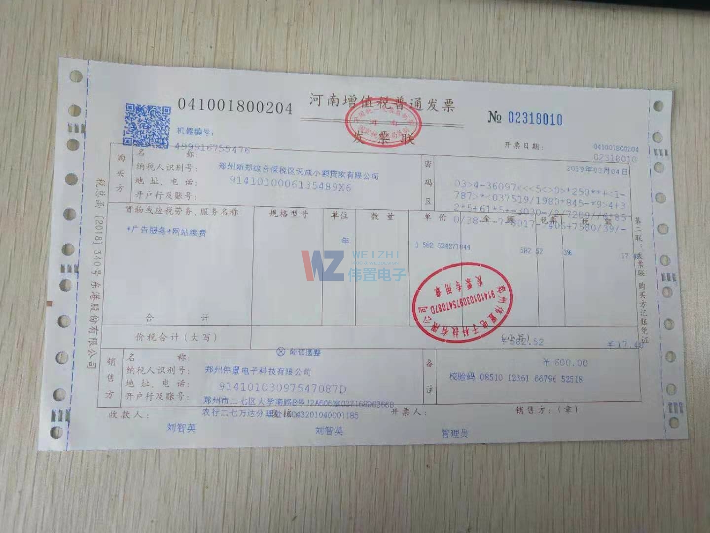 鄭州新鄭綜合保稅區(qū)天成小額貸款有限公司發(fā)票